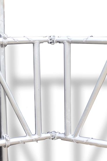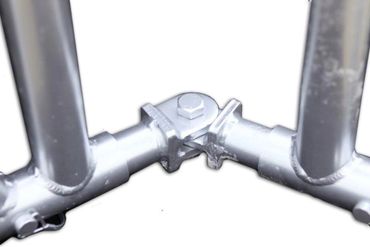 The hinged spigots combine with scaffolding beams to offer a wide range of muti angle profiles as well as bespoke profiles to suit any desired shape or application in both the horizontal and vertical planes. Essentially the articulated spigots offer unrivaled flexibility via a pivoting joint spigot.